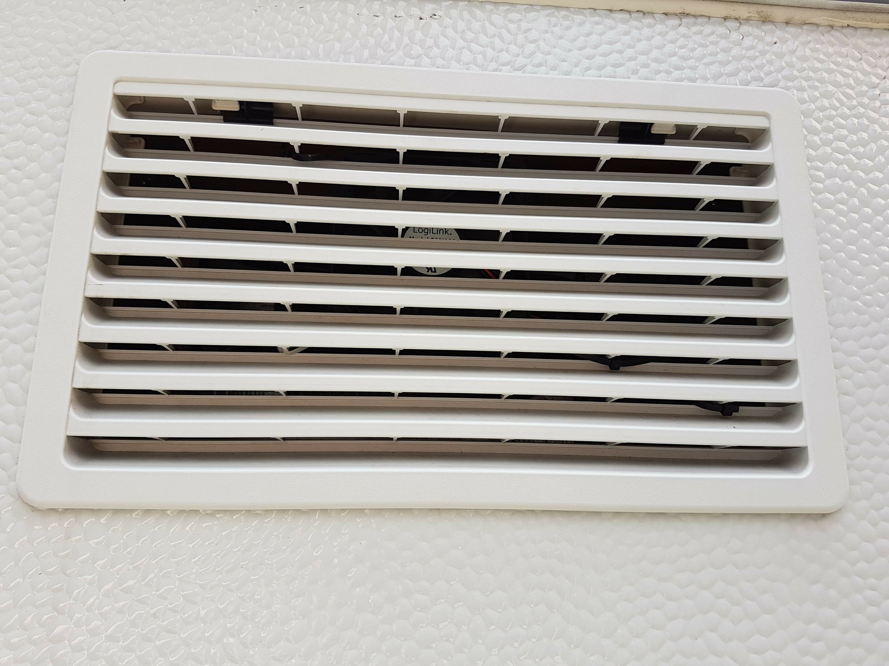Immer wieder hört man von Problemen dass der Kühlschrank ab höheren Temperaturen nicht mehr richtig herunter kühlt. Das liegt oft daran dass die Wärme nicht weg kann hinter dem Kühlschrank. Hier sind die Hitzeleitbleche und oft langt die Sogwirkung von unten nach oben nicht aus. Daher habe ich mir einen leisen Lüfter eingebaut. Den Lüfter habe ich oben eingebaut, damit die warme Stauluft nach außen gefördert wird.