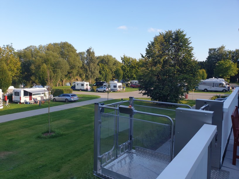 Die Anlage ist Modern und sauber, bei der Einfahrt hätte man sich etwas mehr Gedanken machen können. An den Kartenleser zur Einfahrt kommt man nur durch aussteigen ran. Aber ok, das können die bestimmt noch richten. Die Stellplätze sind gerade und 100qm groß. Auch das Sanitär Gebäude ist nagelneu wie man so schön sagt. Hier könnte man auch mal länger bleiben. Sauber sind sie auch, rein kommt man am Abend nur mit der Chipkarte auf diese sind pro Person 5 Minuten Duschzeit aufgebucht. Die Zeit sollte ja eigentlich für jeden langen.